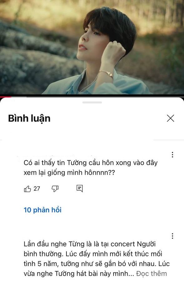 Sau khi Vũ Cát Tường công bố tin cầu hôn, người hâm mộ "tràn" vào MV Từng Là, để lại nhiều bình luận nức nở