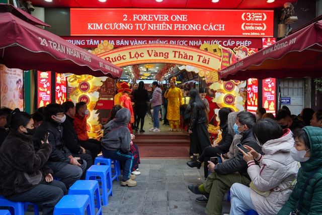 Cũng đang xếp hàng chờ mua vàng, chị Nga (trú Lĩnh Nam, Hà Nội) cho biết, giống như mọi người, hằng năm chị lại đến tiệm vàng trên phố Trần Nhân Tông để xếp hàng mua vàng ngày vía Thần Tài để lấy may, cầu tài lộc.